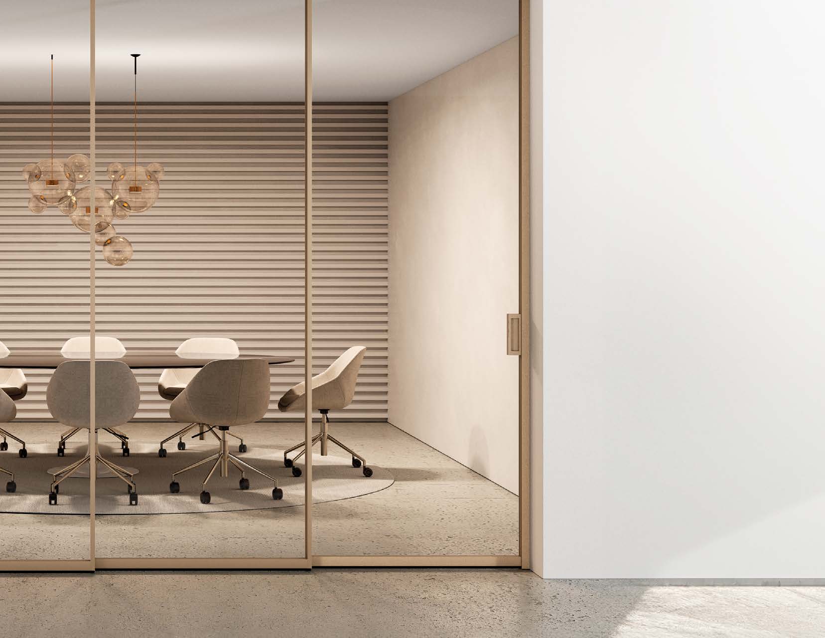 Synchronized panels glide effortlessly, allowing spaces to transform with minimal effort